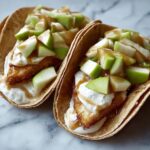 Get playful with your Apple Cheesecake Tacos Recipe presentation! Try serving the tacos on a rustic wooden board with small bowls of extra caramel sauce and whipped cream for dipping. For a fun party twist, assemble tacos in mini taco holders or cupcake liners to keep them upright and ready for dipping and devouring. You can also experiment with different tortilla colors like whole wheat or spinach to contrast with the creamy filling and warm apples visually.