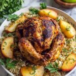 This Apple Cider Glazed Roast Chicken is a flavorful and juicy roast chicken recipe enhanced with a sweet and tangy apple cider glaze. The chicken is infused with fresh thyme, apples, and onion, then roasted to perfection with a crispy golden skin, making it an ideal family dinner or special occasion dish.