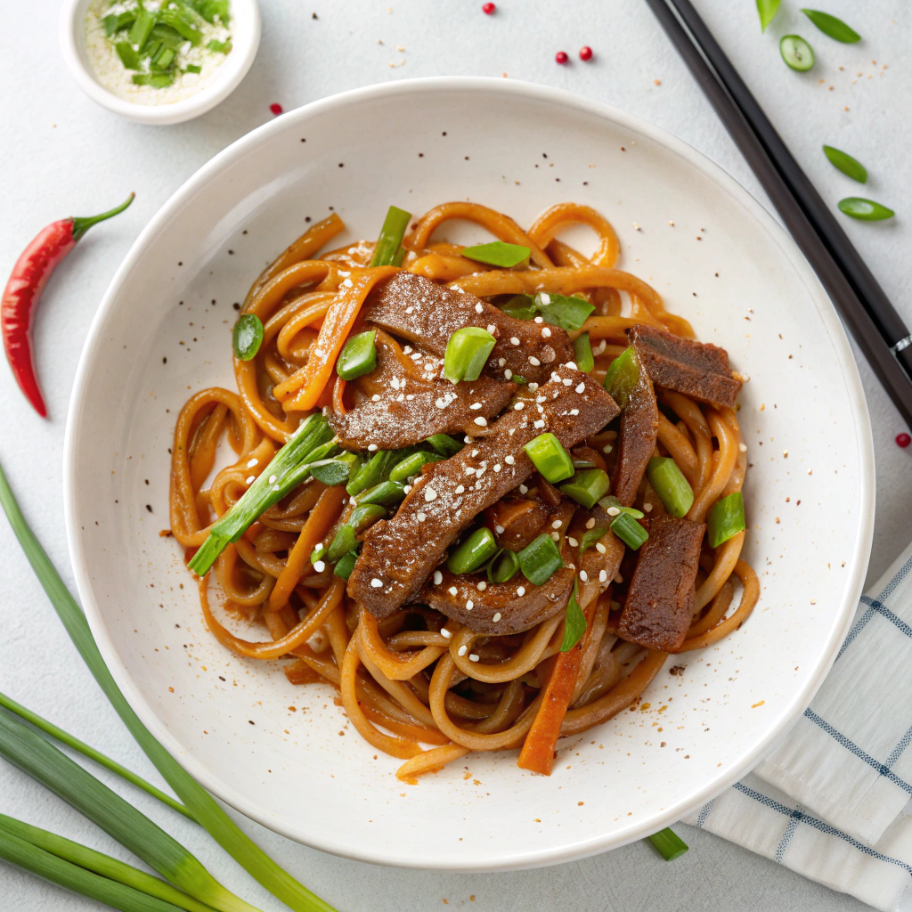 For a fun twist, try serving the noodles in individual deep bowls with extra sauce ladled over. Alternatively, you can plate the noodles in a neat nest topped with beef slices arranged artfully on top. Adding a soft-boiled egg or a sprinkle of chili flakes can also add visual appeal and an extra kick!