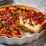 A savory Bacon Onion Tomato Pie combining a flaky pie crust filled with caramelized onions, crispy bacon, perfectly prepared tomatoes, and a rich cheese custard, baked to golden perfection. This comforting dish blends sweet and smoky flavors with creamy textures, perfect for brunch, lunch, or dinner.