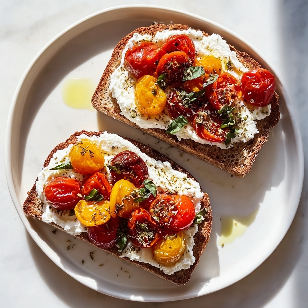 - Assemble Toasts: Evenly scatter the seasoned cherry tomatoes over each bread slice, creating a vibrant and flavorful base.