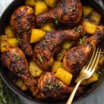 A flavorful and juicy baked Jamaican Pineapple Jerk Chicken recipe featuring tender chicken thighs marinated in a zesty jerk sauce with pineapple juice and chunks for a perfect balance of spicy and sweet Caribbean flavors. The chicken is baked until crispy and caramelized, making it an easy and delicious main course.