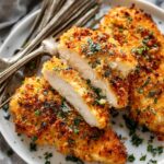 This Baked Ranch Chicken recipe delivers juicy, flavorful chicken breasts coated in a crispy, cheesy ranch breadcrumb crust. Perfect for an easy and satisfying weeknight dinner, it combines the savory taste of ranch seasoning, Parmesan cheese, and a hint of paprika for a deliciously baked main dish.