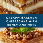 This baklava and cheesecake hybrid is a luxurious dessert that combines the rich, creamy texture of classic cheesecake with the crispy, nutty, honey-soaked layers of traditional baklava. Featuring a phyllo dough crust, a spiced nut filling, and a luscious cheesecake center, all finished with a golden syrup glaze, it’s an unforgettable fusion dessert perfect for holidays and special occasions.