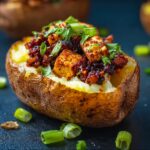 Once out of the oven, garnish your stuffed potatoes with chopped green onions and fresh cilantro. These fresh toppings brighten the dish and introduce an herbaceous pop that perfectly complements the smoky, hearty interior. It’s a small step that makes a big difference in presentation and flavor.