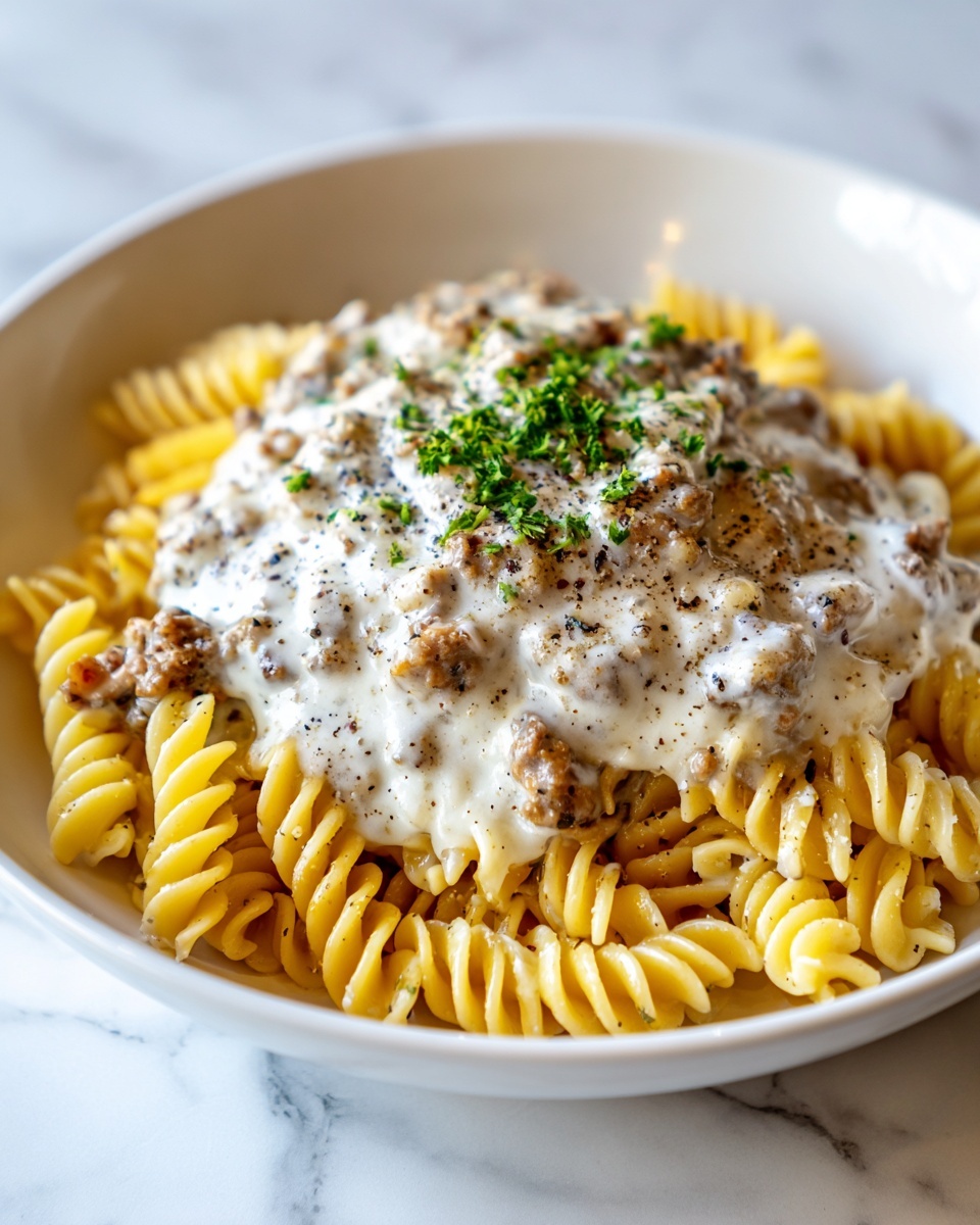 The beauty of this recipe lies in its simplicity, relying on straightforward ingredients that combine to create something truly special. Each component plays a key role—from the tender rotini pasta that holds the sauce beautifully, to the ground beef providing hearty richness, and the creamy garlic Parmesan sauce delivering that perfect zing.