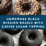 These Black Russian Bagels, also known as Pumpernickel Everything Bagels, are a rich, flavorful twist on traditional bagels. Infused with Dutch-process cocoa powder, espresso, activated charcoal, and coffee liqueur, these bagels boast a deep, complex flavor profile. Topped with a sweet and aromatic coffee-sugar-cinnamon blend, they offer a perfect balance of savory and sweet, making them ideal for a unique breakfast or snack treat.