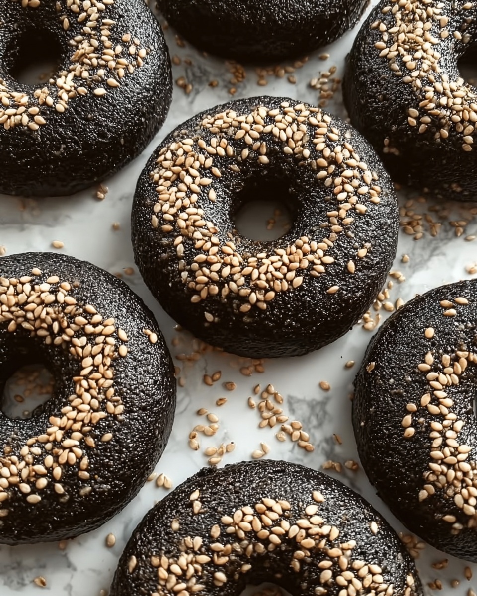 These Black Russian Bagels, also known as Pumpernickel Everything Bagels, are a rich, flavorful twist on traditional bagels. Infused with Dutch-process cocoa powder, espresso, activated charcoal, and coffee liqueur, these bagels boast a deep, complex flavor profile. Topped with a sweet and aromatic coffee-sugar-cinnamon blend, they offer a perfect balance of savory and sweet, making them ideal for a unique breakfast or snack treat.