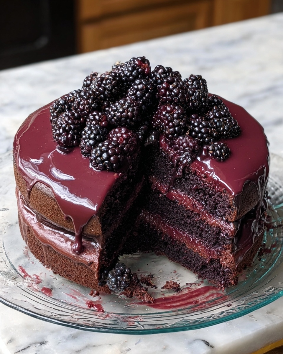 This cake pairs wonderfully with robust red wines or a rich, dark espresso. The bitterness complements the sweet tartness of the blackberries and the chocolate ganache, making each bite an indulgent experience you’ll want to savor slowly over conversation.