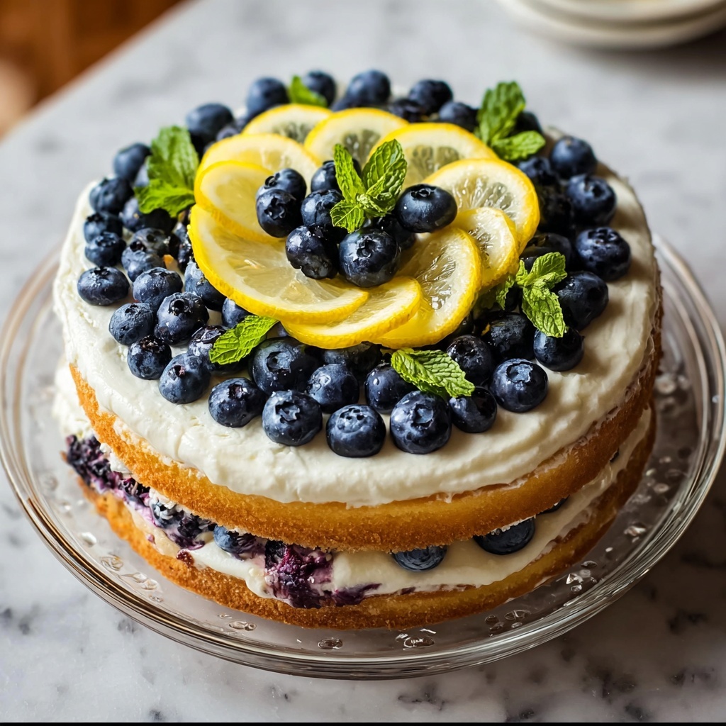 Garnish with extra fresh blueberries and a sprinkle of lemon zest for a beautiful, inviting finish. Chill the cake before serving to enhance the flavors and texture.