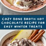 A rich and cozy Bone Broth Hot Chocolate recipe that combines nourishing bone broth with creamy milk and cocoa for a comforting beverage. Sweetened naturally with honey or maple syrup and enhanced with vanilla and a pinch of sea salt, this unique twist on traditional hot chocolate is perfect for a warm, wholesome treat.