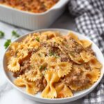 All these ingredients come together smoothly to create a dish that’s simple yet packed full of flavor. Each item plays a crucial part, from the tender bowtie pasta providing the perfect texture, to the savory meat sauce and layers of cheese bringing richness and depth.