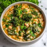 A hearty and nutritious Broccoli, Barley, and Cannellini Bean Soup that’s perfect for a comforting meal. This vegetarian soup combines wholesome barley, tender broccoli, and creamy cannellini beans simmered in a flavorful vegetable broth, infused with garlic, onion, and thyme. Ideal for a wholesome lunch or dinner, it offers a balanced blend of fiber, protein, and vitamins in just 50 minutes.