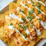 These Buffalo Chicken Nachos are a spicy and savory crowd-pleaser featuring tender shredded chicken tossed in buffalo sauce and ranch dressing, layered over crispy corn tortilla chips, and topped with melted colby jack cheese and fresh green onions. Perfect as a game day snack or casual party appetizer.
