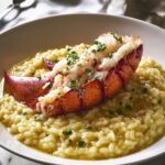 This Butter Poached Lobster Risotto combines creamy Arborio rice with succulent lobster poached in butter, finished with Parmesan cheese and fresh herbs for a rich and indulgent seafood dish perfect for special occasions or gourmet dinners.