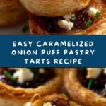 These Caramelized Onion Tarts feature sweet, golden onions slow-cooked to perfection and baked atop flaky puff pastry with Gruyère cheese, making a deliciously elegant appetizer perfect for any occasion.