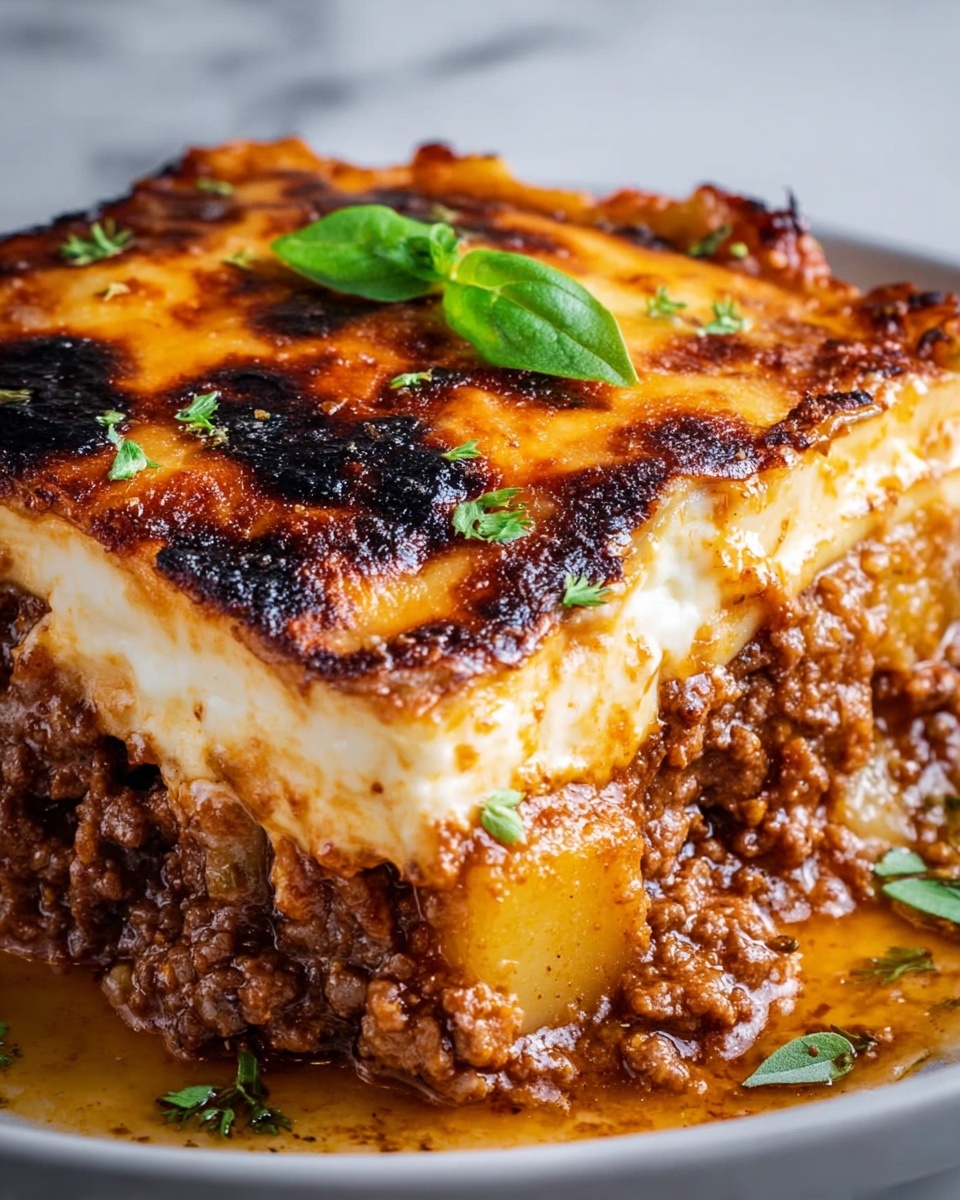 Reheat moussaka in the oven at 350°F (175°C) for about 15–20 minutes until warmed through and bubbly again. Avoid microwaving if possible to maintain the delicate textures, especially the creamy béchamel topping, which bakes to perfection in the oven. A quick broil at the end brings back that golden crust beautifully.