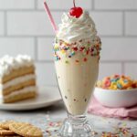 - Assemble and Garnish: Pour the creamy milkshake into the prepared sprinkle-rimmed glass. Generously top with whipped cream, and finish by placing a maraschino cherry on top for that classic, perfect milkshake presentation.