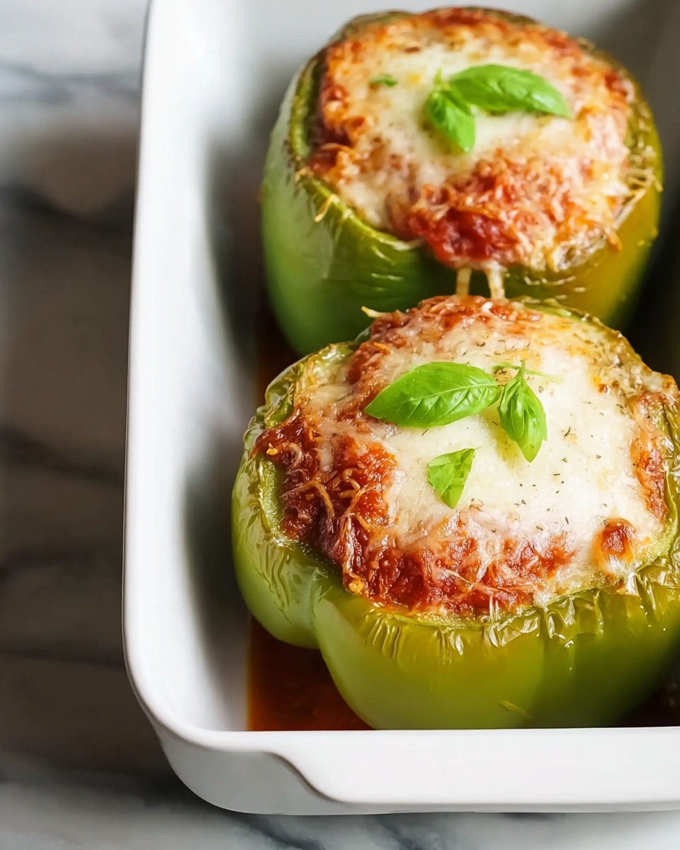 For a stunning presentation, serve each pepper upright on a white plate with a drizzle of tomato sauce artistically swooshed beside it. Top with extra fresh basil leaves or even a dollop of sour cream for an extra layer of creaminess. These little touches make the dish feel like a restaurant-worthy delight at home.