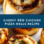 Delicious Cheesy BBQ Chicken Pizza Rolls featuring a soft homemade dough filled with tangy BBQ sauce, shredded chicken, melted mozzarella cheese, and optional red onions. Perfect as a savory snack or party appetizer, these pizza rolls are baked to golden perfection and served warm with extra BBQ sauce for dipping.