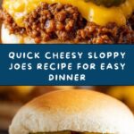 A quick and delicious recipe for Cheesy Sloppy Joes featuring ground beef cooked with aromatic vegetables and a rich, tangy tomato-based sauce, all melted with cheddar cheese and served on toasted hamburger buns for a comforting, family-friendly meal.