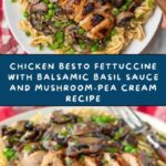 Chicken Besto Fettuccine with Balsamic Basil Sauce and Mushroom-Pea Cream Recipe