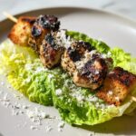 - Assemble Skewers: Build each skewer by first placing a romaine lettuce leaf, then a grilled chicken cube, and finishing with a crunchy crouton.
