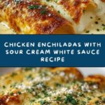 This Chicken Enchiladas with Sour Cream White Sauce recipe features tender shredded chicken wrapped in warm flour tortillas, smothered in a creamy, tangy white sauce made with sour cream and green chilies, then baked with melted Monterey Jack cheese for a comforting and flavorful Mexican-inspired dish perfect for weeknight dinners.