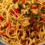 - Combine with Spaghetti: Mix the cooked spaghetti into the skillet contents, ensuring the pasta is coated evenly with the sauce and chicken mixture. Season with paprika, salt, and pepper according to your taste.