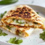 This Chile Relleno Quesadilla is a delightful twist on a classic Mexican favorite, featuring roasted poblano peppers and melted Monterey Jack cheese encased in a crispy, buttery flour tortilla. Easy to prepare and full of smoky, cheesy goodness, it makes a perfect quick meal or snack.