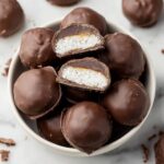 - Prepare the Chocolate Coating: In a microwave-safe bowl, melt the dark chocolate chips with the coconut oil by heating in 30-second intervals, stirring after each until smooth and fully combined. Let the melted chocolate cool slightly but remain fluid for dipping.
