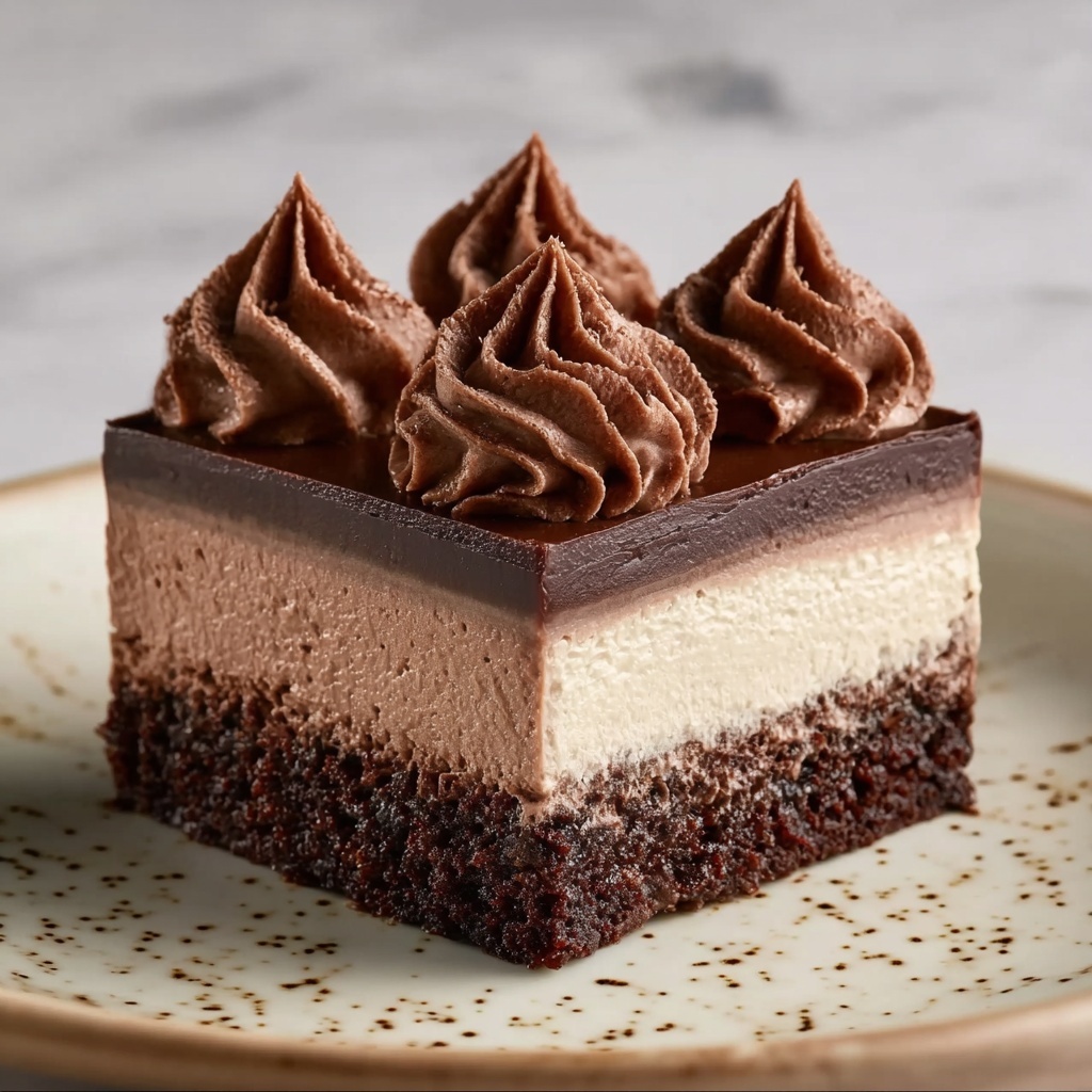 Decadent Chocolate Mousse Brownies featuring a rich, fudgy brownie base topped with a creamy, airy chocolate mousse. This elegant dessert combines the best of both worlds with a perfect balance of dense chocolate cake and light, fluffy mousse, ideal for special occasions or a luxurious treat.