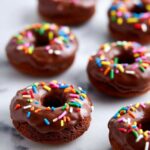 - Add toppings and serve: Sprinkle each frosted donut with a pinch of rainbow sprinkles for a colorful finish. Enjoy your healthy, protein-packed chocolate donuts!