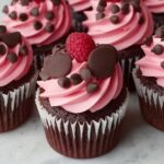 Pair these cupcakes with a scoop of vanilla ice cream or a dollop of fresh whipped cream for an extra indulgence. They also go wonderfully alongside a cup of hot coffee or a glass of cold milk to balance the richness and highlight the raspberry’s zesty notes.