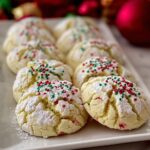 These Christmas Ooey Gooey Butter Cookies are a festive and indulgent treat perfect for the holiday season. Soft, buttery, and rich with a cream cheese-based dough and coated in powdered sugar, these cookies are topped with colorful red and green sprinkles that add a cheerful touch. They bake to a delicate crumb with a gooey center, making them an irresistible addition to any cookie tray or holiday gathering.