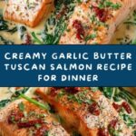 This Creamy Garlic Butter Tuscan Salmon is a rich and flavorful dish featuring tender salmon fillets cooked in a luscious garlic butter sauce with sun-dried tomatoes, spinach, and Parmesan cheese, perfect for an elegant yet easy-to-make dinner.