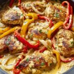 This Creamy Pepperoncini Chicken recipe features tender, sliced chicken breasts cooked to golden perfection and tossed in a rich, tangy sauce made from pepperoncini peppers, Parmesan cheese, and heavy cream. Paired with sautéed bell peppers and onions, this flavorful dish comes together quickly on the stovetop, delivering a perfect balance of creamy and zesty flavors that make for an easy yet impressive weeknight dinner.