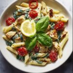 - Serve and garnish: Dish the pasta into bowls and garnish with fresh basil leaves. Serve with lemon wedges on the side for a fresh citrus kick.