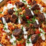 If you are craving a dish that perfectly balances richness, comfort, and bold flavor, look no further than this Creamy Queso Rice with Juicy Steak Strips Recipe. Imagine tender basmati rice cooked in savory chicken broth and crushed tomatoes, combined with perfectly seared steak strips bursting with seasoning, all topped with luscious melted white queso cheese. This dish is an absolute showstopper, delivering creamy, cheesy goodness alongside hearty, juicy steak in every bite. It’s a meal that feels like a warm hug and an indulgence all at once, sure to become a beloved favorite in your kitchen.