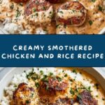 Creamy Smothered Chicken and Rice is a comforting and flavorful dish featuring tender chicken thighs or breasts cooked in a creamy, savory sauce with aromatic spices, tender rice, and melted cheese, garnished with fresh parsley. Perfect for a hearty family meal ready in about 40 minutes.