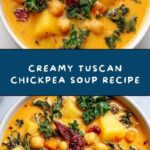 Serve your Creamy Tuscan Chickpea Soup Recipe in a large, shallow bowl topped with toasted pine nuts or a dollop of vegan yogurt for an elegant touch. For a casual gathering, try mini bread bowls or mason jars for a charming, portable presentation.
