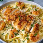 This Crispy Chicken Fettuccine Alfredo recipe combines golden, crispy chicken cutlets with a rich and creamy homemade Alfredo sauce tossed with perfectly cooked fettuccine. The dish strikes a delightful balance between crispy textures and smooth, cheesy sauce, making it an irresistible Italian-American classic ideal for family dinners or entertaining guests.