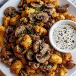 Whisk together all the ranch dip ingredients—mayonnaise, sour cream or Greek yogurt, lemon juice, dried dill, garlic powder, onion powder, dried parsley, salt, and pepper—in a bowl. Adjust the consistency with buttermilk until it’s perfectly smooth and creamy, creating a refreshing, flavorful dip that pairs beautifully with the hot mushrooms.