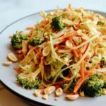 A vibrant, crunchy salad featuring broccoli slaw, crushed ramen noodles, nuts, and a tangy, sweet dressing. This no-cook dish is perfect for summer gatherings, potlucks, or a quick, satisfying side with a delightful mix of textures and flavors.