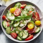 This salad pairs wonderfully with grilled meats like chicken, fish, or burgers because it cuts through the richness with its crisp, acidic notes. It’s also an excellent companion to rice dishes, sandwiches, or even alongside a creamy pasta salad for a balanced, bright summer meal that feels light but satisfying.