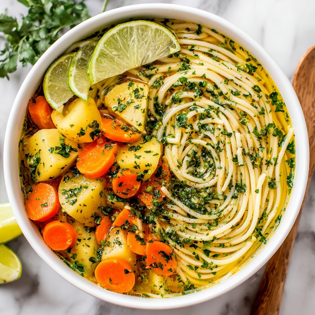 Gently stir in the cooked rice noodles and allow the soup to heat through for 2 to 3 minutes. Remove the pot from the heat, then add the fresh lime juice and chopped cilantro to brighten the flavors just before serving.