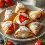 Indulge in these irresistible Deep Fried Strawberry Cheesecake bites, featuring creamy cheesecake centers coated in a light, sweet batter and fried to golden perfection. Topped with macerated fresh strawberries and a dusting of powdered sugar, this dessert offers a delightful contrast of textures and flavors perfect for sharing.