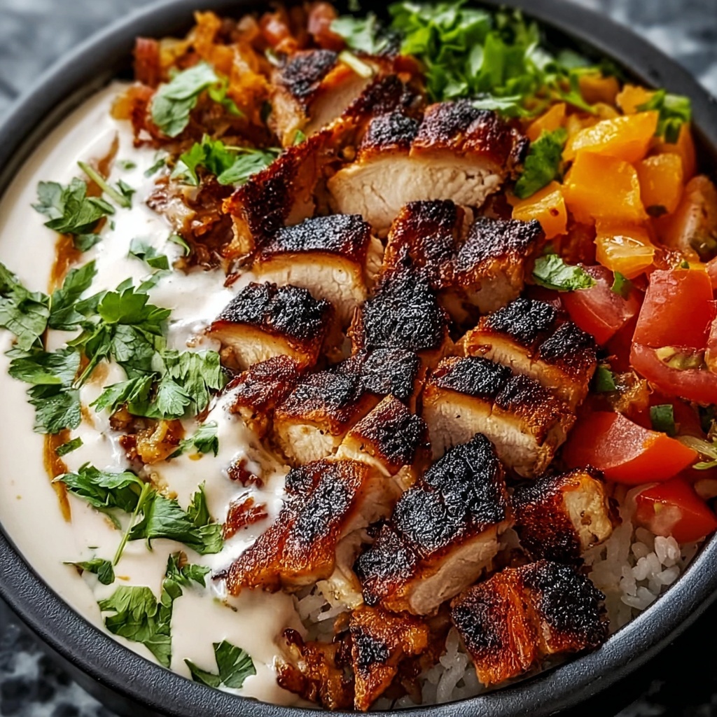 This Delicious Chipotle Chicken Bowl is a flavorful and satisfying meal perfect for lunch or dinner. Tender marinated chicken breasts are grilled to perfection and served atop fluffy cilantro-lime rice, with vibrant layers of corn, black beans, avocado, fresh vegetables, and a creamy chipotle sauce. This dish is easy to prepare in under an hour and offers a harmonious blend of smoky, spicy, and fresh flavors with optional garnishes for added richness.