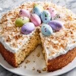 This delightful Easter Cake combines zesty lemon flavors with creamy coconut and a rich cream cheese frosting, crowned with festive candy-coated chocolate eggs. Perfectly moist and tender, this Bundt cake is a festive centerpiece for any Easter celebration or springtime gathering.
