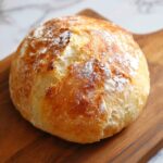 This Easy No-Knead Artisan Bread Recipe pairs beautifully with a variety of dishes, from hearty soups and stews to vibrant salads and cheese boards. Its crusty texture is perfect for dipping into olive oil and balsamic vinegar or sopping up rich sauces and gravies.